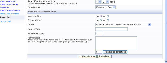 as i tell you when you are in the forum area clic on members list (logged in admin) then edit the member and you got it