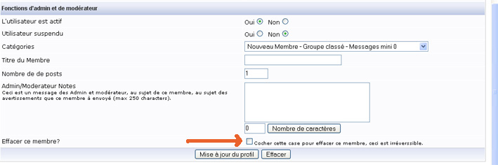 Just tested again and I agree... The delete box does not appear when you use the administrator's facility 'Member Administration' but does when you edit a member's profile 'normally'. So we have a safe way to delete members and can wait for the admin method to be fixed. |