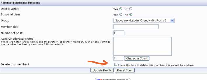 Yes i have noticed this too. The other version I had from this pic there was a delete member under admin notes. This is nolonger here. I had someone being funny sign-up with a popular persons username and beat them to the punch as I moved to a new board. Took me awhile to figure it out. But this is where you are really the Admin in control. I logged into this members fake profile and changed the password and re-assigned it to the rightful person instead of turning the suspend user on. and then just relayed the new passsword on to that person to change once they got in. It is a different set-up and I for one am really liking the changes from the 2.0 I had been running.