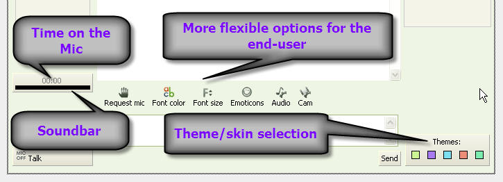 - Admin options allow you to ban irregualr users for as long as you want with one click. You can kick, bounce for 1 hour, ban for 30 days, ban for x amount of hours, a parameter that you specify in the source code. You can take Mic, Take-down cam, Ignore user, and much more.